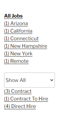 Sometimes, our users want to show the number of jobs in a taxonomy term, eg: the number of jobs in the location (taxonomy) Arizona (term). For example: